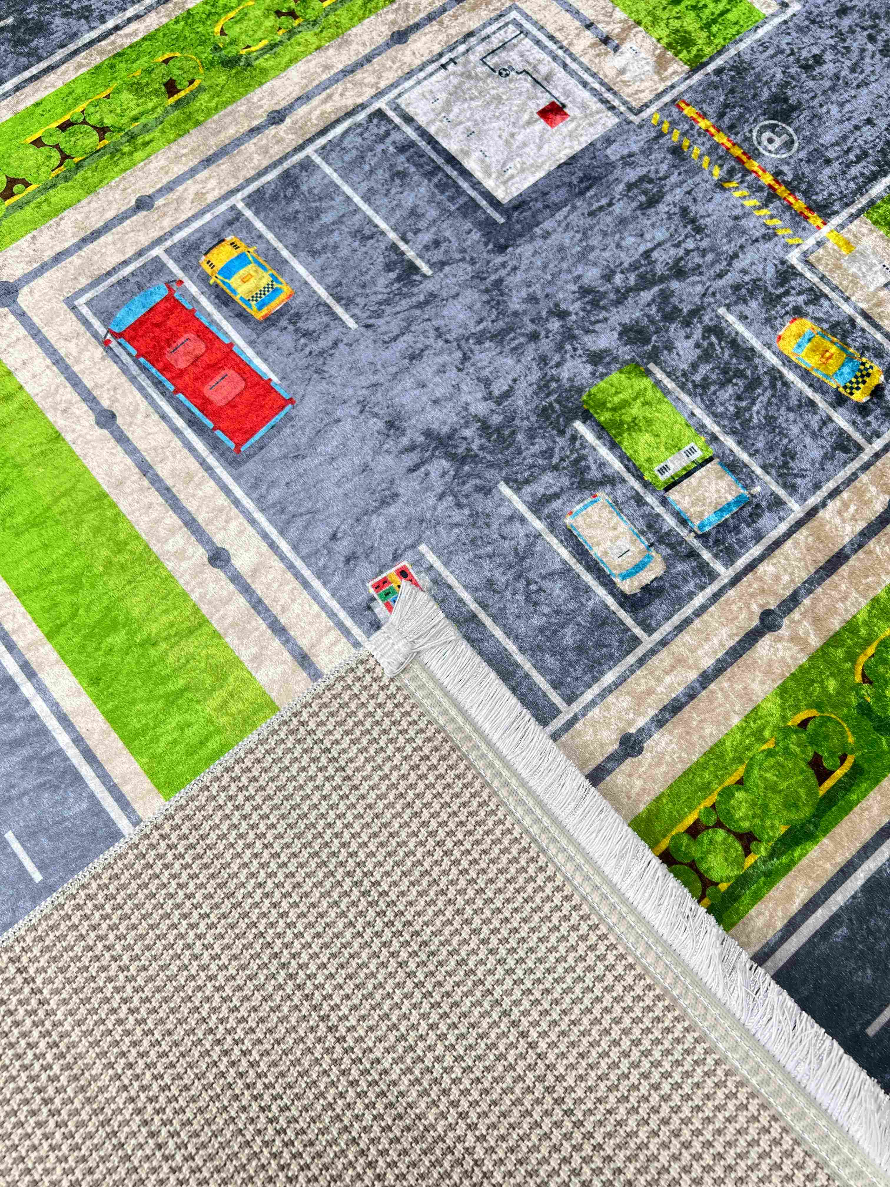 Безворсовый ковер имеет противоскользящее покрытие (из латекса) для безопасности и удобства эксплуатации. В середине поролоновая прослойка для мягкости и тепла, а верхний слой похож на бархат-нежный и приятный на ощупь.